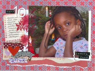En frossa i band och dekorationer. Ett ögonblicksfoto av min dotter en av juldagarna hemma hos mormor. Hon är så fin men det är ingen särskild story runt fotot. Jag utnyttjade då ett av journalingkorten som hör till serien där det var en tio i topp lista. Jag har listat saker som Miriam gillar just nu.