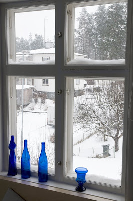 Och om man vänder sig om från scraphörnan så ser man ut på omgivningarna genom våra stora fönster. De är så fina och gamla. De har suttit sen huset byggdes och vi lägger in vadd på hösten när vi sätter in innanfönstren.