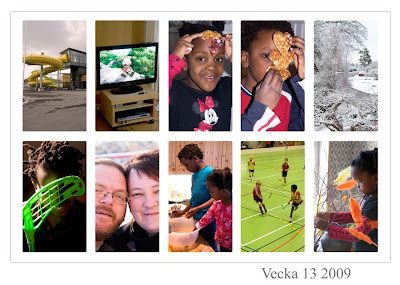 Barnen och Peter var på badhuset i måndags. Våffeldagen passerade och vi har påskpyntat lite. Ny innebandyklubba och match för Benjamin. Båda barnen bakade chokladbollar som fredagsfika. Och så var ju det här veckan med den nya stora fina tv:n!!!