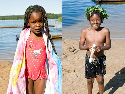 Veckans första bild föreställer Peter som pysslar halsband åt Miriam. Hon fick ett pysselset i present och jag tyckte att han lika väl som jag kunde göra halsbanden. Det blev så fina fotohalsband! Miriam har sin egen dator på jobbet och där sitte man och grejar och dricker cola. Inte undra på att hon ville vara med två dagar. Vi hämtade också det sista viktiga papperet för vår adoption på kommunhuset. Det skulle sen postas upp till Stockholm. Skönt att ha allt klart nu och bara vänta. Ni ser vilken liten donnna vi har i familjen; rosa linne, rosa kjol och så guldskor. Vi gjorde en härlig cykeltur i kvällssolen som resulterade i många härliga foton. I växthuset är det skördetid. Gurkor i massor och tomaterna börjar ta färg. Benjamin gick på cirkusskola hela veckan mellan 10 och 15. På fredagen var det avslutning med lite uppvisning. De fick träna på att jonglera, göra volter, cykla på enhjuling m.m. Det passade Benjamin perfekt. På lördagen var jag på bröllop och övriga familjen spenderade helgen hos kusinerna.