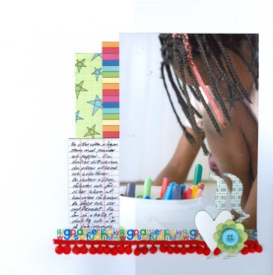 Sista layouten är en mix av en strip och utklippta figurer och så de underbara bokstäverna.