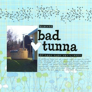 Den här layouten är min första med stämpeln och jag gillar hur papper och stämpel ramar in fotot på vår badtunna. När vi sitter i badtunnan ser vi moln dra förbi eller bara en oändlig stjärnhimmel. Samma frihetskänsla ger mig dessa fåglar.
