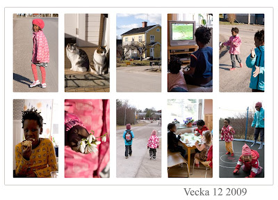 Veckans bilder går i vårens tecken. Det har varit mycket solsken och utelek den här veckan. Det kulminerade med att studsmattan togs fram till helgen. Vårpromenad med nya skor och kattmys på trappan. Vårt hus som det ser ut just nu. Barnen fick ett nytt tv-spel så nu spelar de fotboll i soffan. Frukost är inte Benjamins grej men knäckemacka är ok. Miriam och jag hälsade på Benjamin i skolan och på eftermiddagen blev det fika i Sonstorp med mamma och tre barn. Mycket gemenskap och vår!