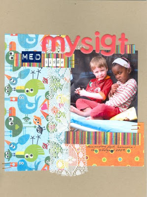 Basic Grey är ett företag som man både älskar och hatar. Jag älskar dem för att de tillverkar så olika serier med så oändligt många produkter som matchar perfekt till deras papper. Jag hatar dem för att de producerar så mycket som man bara vill ha, om och om igen. Serien Lime Rickey är en härlig explosion i färger och mönster. Glada, klara färger som gör mig på strålande humör. Papperen är mångsidiga, inte dubbelsidiga utan de passar till allt. Tillbehören är lika färgsprakande och du kan välja brads, knappar, rubons, stickers, bokstäver och figurer allt efter tycke och smak. På Scrapaddicteds blogg kan du läsa utförligare beskrivningar om layouterna.