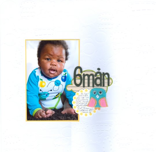 En tävling går ut på att inspireras av bodyn som Samuel har på sig. Jag scrappade kortet igår och det var ju verkligen att vara inspirerad av bodyn.