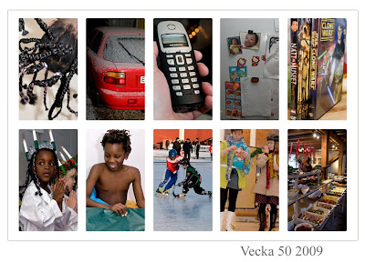 En vecka i julens tecken. På tisdagen var det dags för första luckan i julkalendrarna och första avsnittet på tv:n. Jag hade möjlighet att hälsa på i skolan också. Miriam fick dra bladet på almanackan och Benjamin räknade matte. På onsdagen var hela världen täckt av frost och is. Dessutom så sken solen. Jag uträttade några ärenden mitt på dagen och passade på att njuta av solen. Peter lagar julgransbelysningen så att vi kunde få upp våran utegran. Månene var full och gjorde vinterkvällen magisk och förtrollad. Vi kokade knäck för att sälja på julstugan och som tur var blev det lite över. Peter och barnen var på Busfabriken på lördagen och så kom granen upp till slut. Det är så fint med ljus i trädgården. Första bilden på veckan symboliserar något som i stort sett varje kväll nämligen att Benjamin måste äta innan han går och lägger sig. Det kan ha gått en timme mellan maten och sängdags och ändå är han jättehungrig. Varje gång vi äter så påminner vi om att han ska äta ordentligt för att inte behöva äta sen. Han lovar och så blir det mat i alla fall för han kan ju inte sova hungrig.