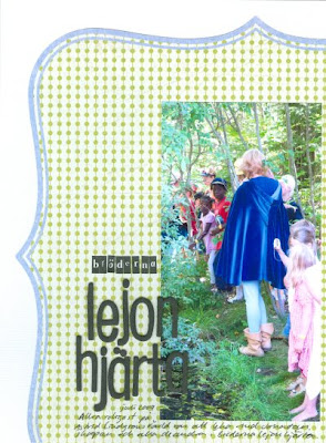 Ett foto med kantarelller var liksom tvunget till dessa papper. Bakgrundspapperet heter Lemonwod Lane. De små mönstrade bitarna kommer ifrån Garden Strip 3. Bokstäver från My Little Shoebox. En liten tapebit från Heidi Swapp fick också plats.